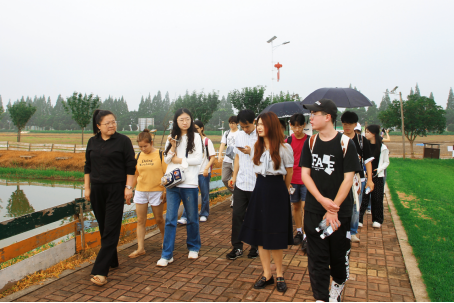 推进农村一二三产业融合发展,是拓宽农民增收渠道、构建现代农业产业体系的重要举措。实践团在参观稻梦田园农文旅融合基地时了解到,该基地以稻米与稻虾为纽带,将传统的稻虾产业与研学劳动教育相结合,发展“以教助农、以旅兴农”的特色文旅融合发展模式。稻梦田园农文旅融合基地负责人向实践团成员详细讲解了基地实现一二三产业融合发展的途径与过程,并围绕第一产业和第三产业如何实现创收解答实践团成员的疑问。