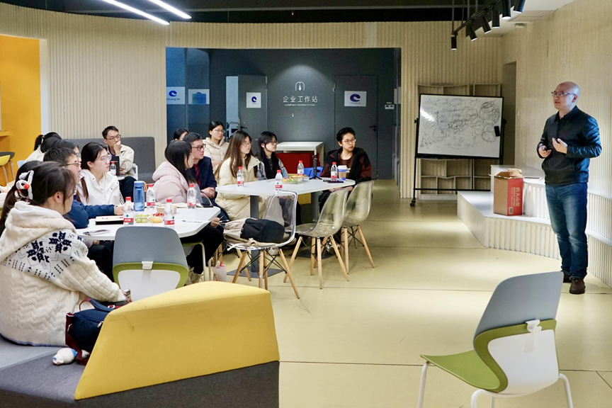 蔡国良重点解读创新创业实践项目指导中的“三力”培养体系,即分析力、行动力与创新力培养。在分析力培养上,他引导学生结合人工智能等趋势判断行业需求,整合跨专业资源明确核心问题;在行动力培养上,通过周计划推进和定期研讨,拆分传统课程知识点,推动项目落地与难点突破;在创新力培养上,他鼓励学生从兴趣出发,在包装、传播等环节打造差异化优势,增强项目竞争力。