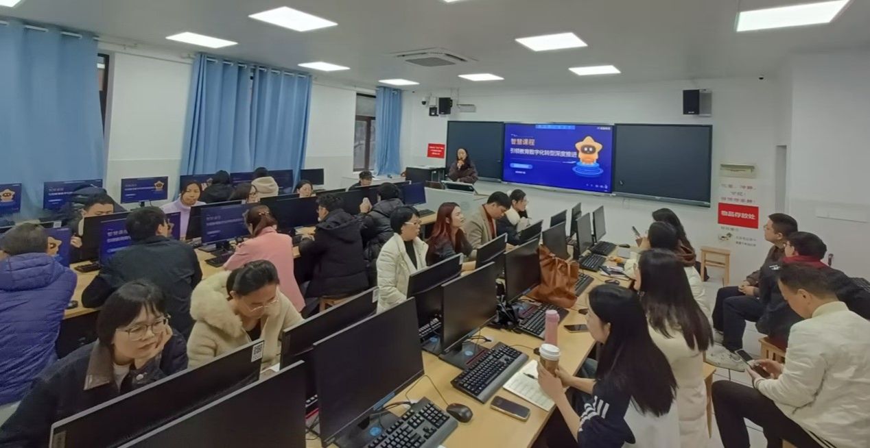 技术人员以“一平三端智慧教学系统”为主体内容,从智慧课程的建设流程与模式,知识图谱梳理的方法与技术,知识图谱课程的共享与应用, Ai工具在备课与教学中的应用以及智慧课程建设演示与实操等方面进行了系统的讲解,并现场回答了老师们的提问。