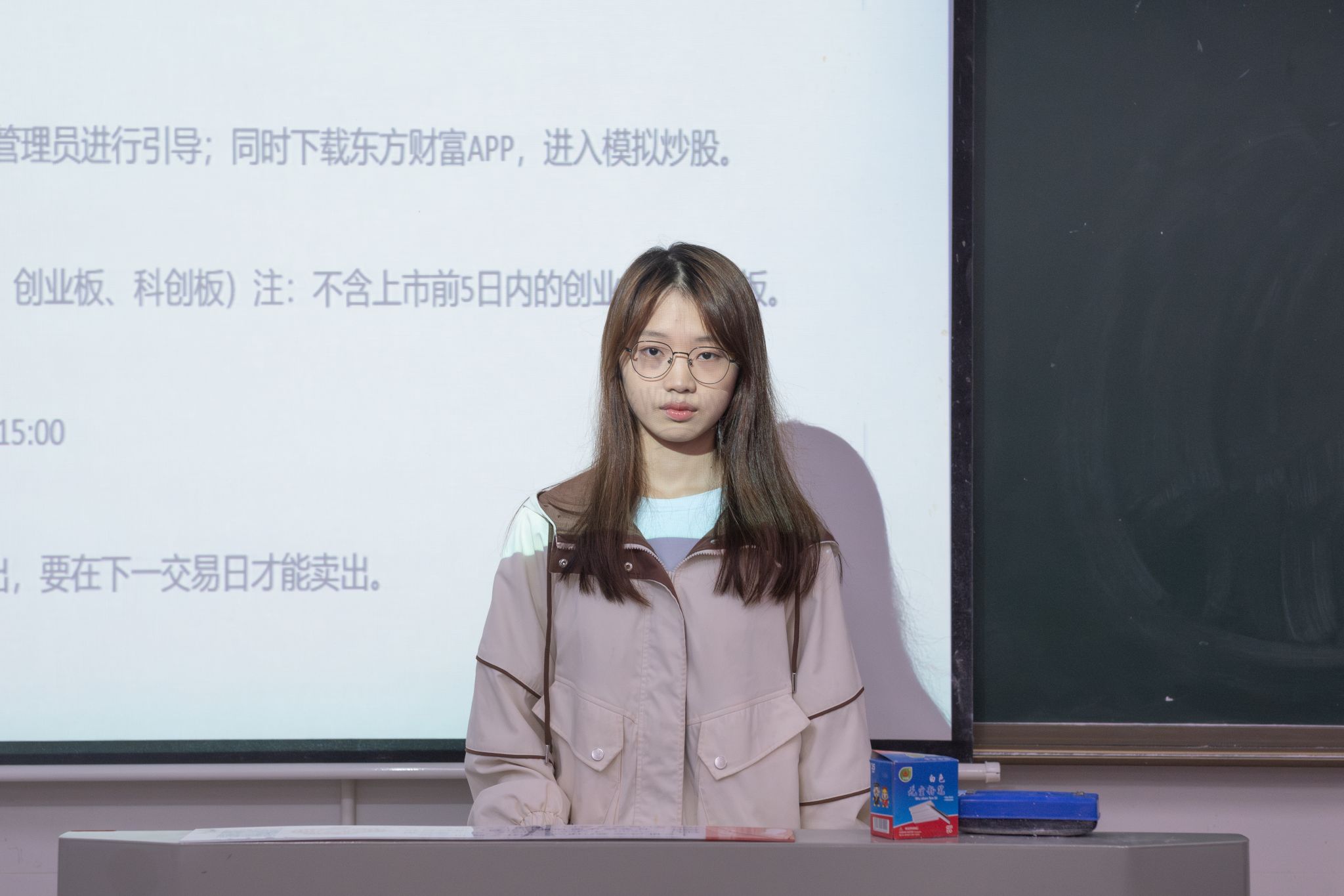 郅璐萌介绍营销策划大赛赛程、要求及评审规则。2024级本科生魏诗涵为同学们讲解金融案例分析大赛与模拟炒股大赛的赛程安排、参赛要求、具体规则以及奖项设计。