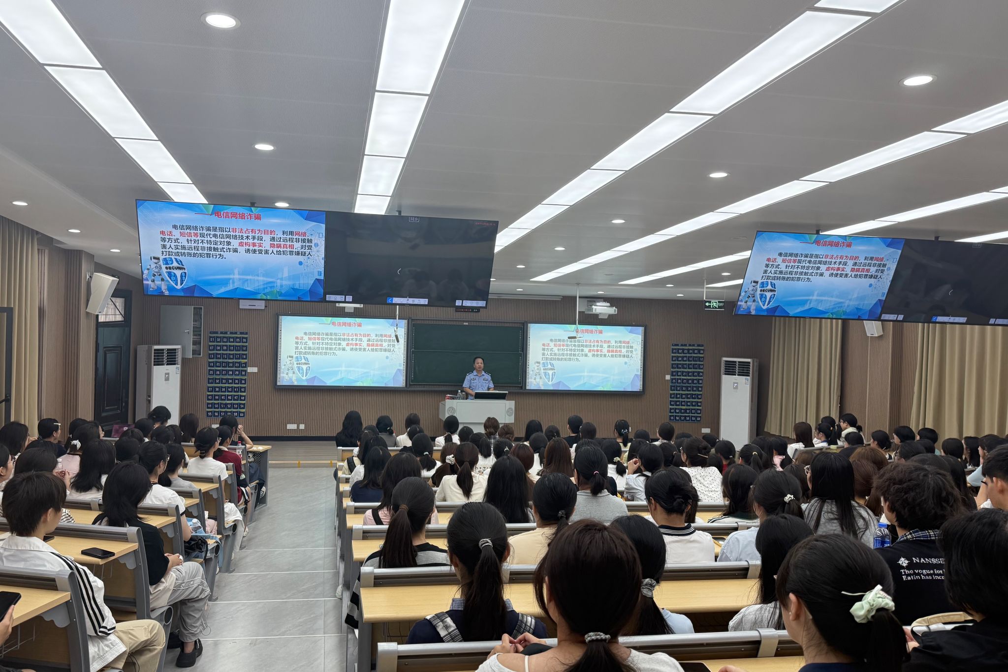 纽约国际官网高度重视新生安全意识培养,于9月15日特邀桔子洲派出所警官陈芳桂开展“防范电信诈骗”主题讲座,通过案例分析系统讲解了常见诈骗手法与防范技巧,并辅以视频学习与法律宣传,切实提升了新生的安全防范能力。