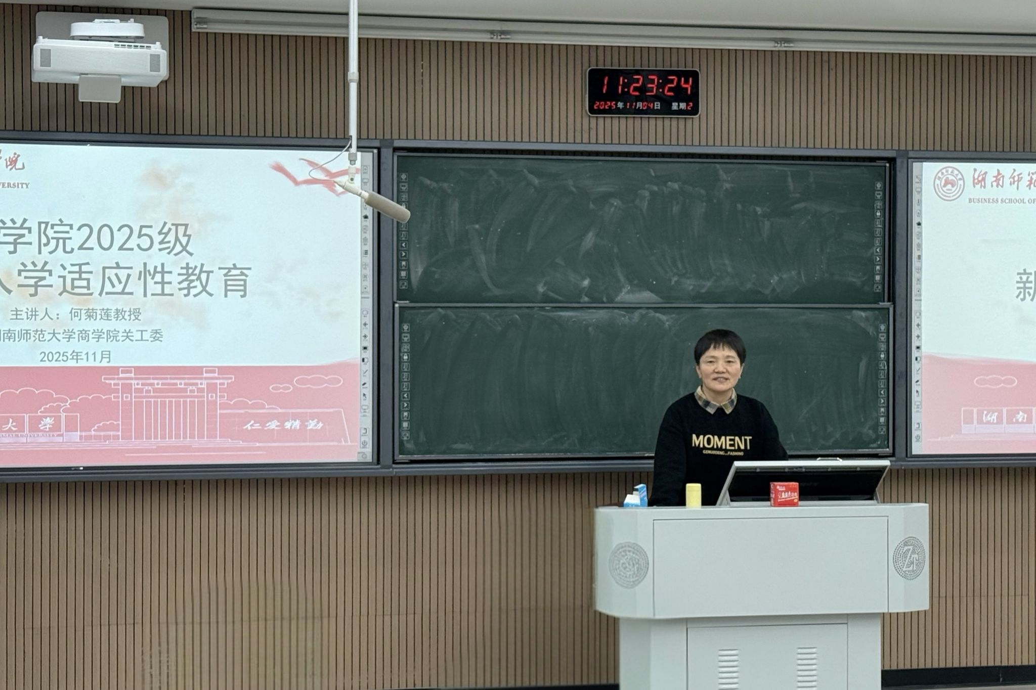 (通讯员 匡珍慧 韩至远 周昕芮)为帮助2025级本科新生尽快适应大学生活,科学规划学业与发展,11月4日上午,我院关工委常务副主任何菊莲在达美楼多功能报告厅为2025级本科新生带来题为“我的大学我做主——主动适应大学生活,积极进行人生规划”的专题讲座。