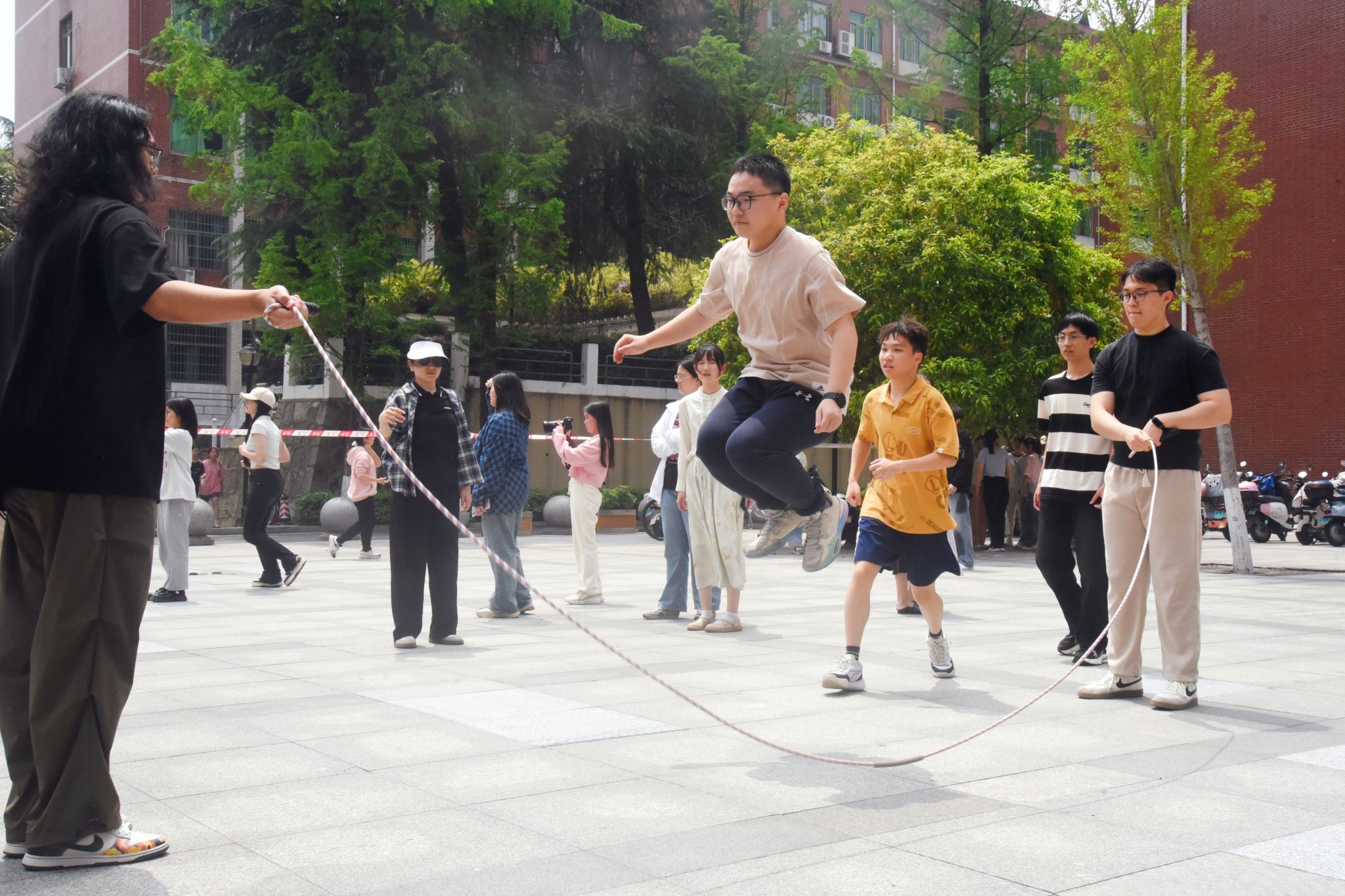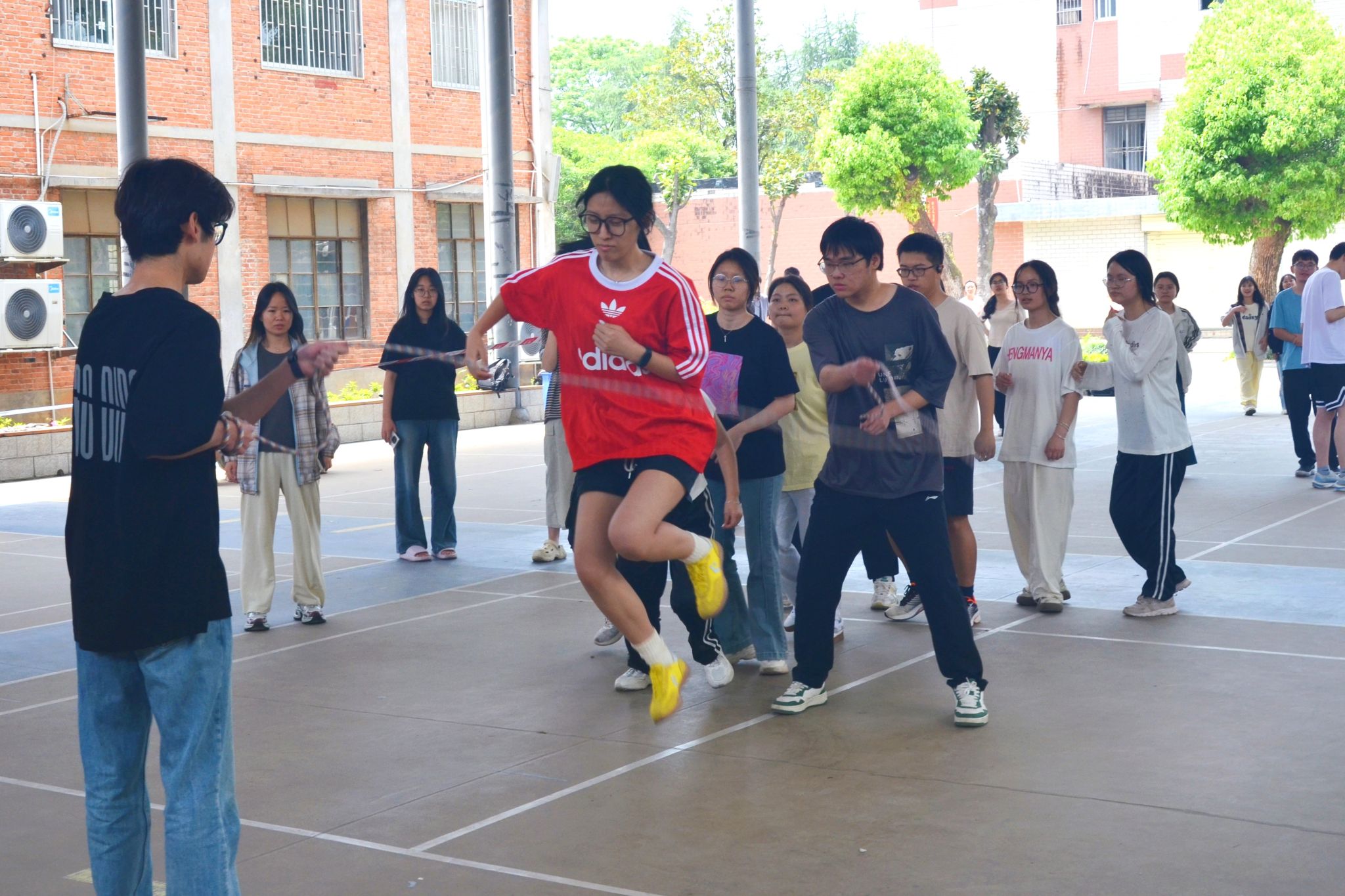 4月17日,张公岭赛区比赛正式开始。2024级金融一班队员高喊节奏、精准卡点;2024级金融二班队员衔接行云流水,引发全场欢呼。最终,2024级金融一班、2024级金融二班和2024级工商二班分别以128次、118次和112次的成绩获得张公岭赛区的前三名。