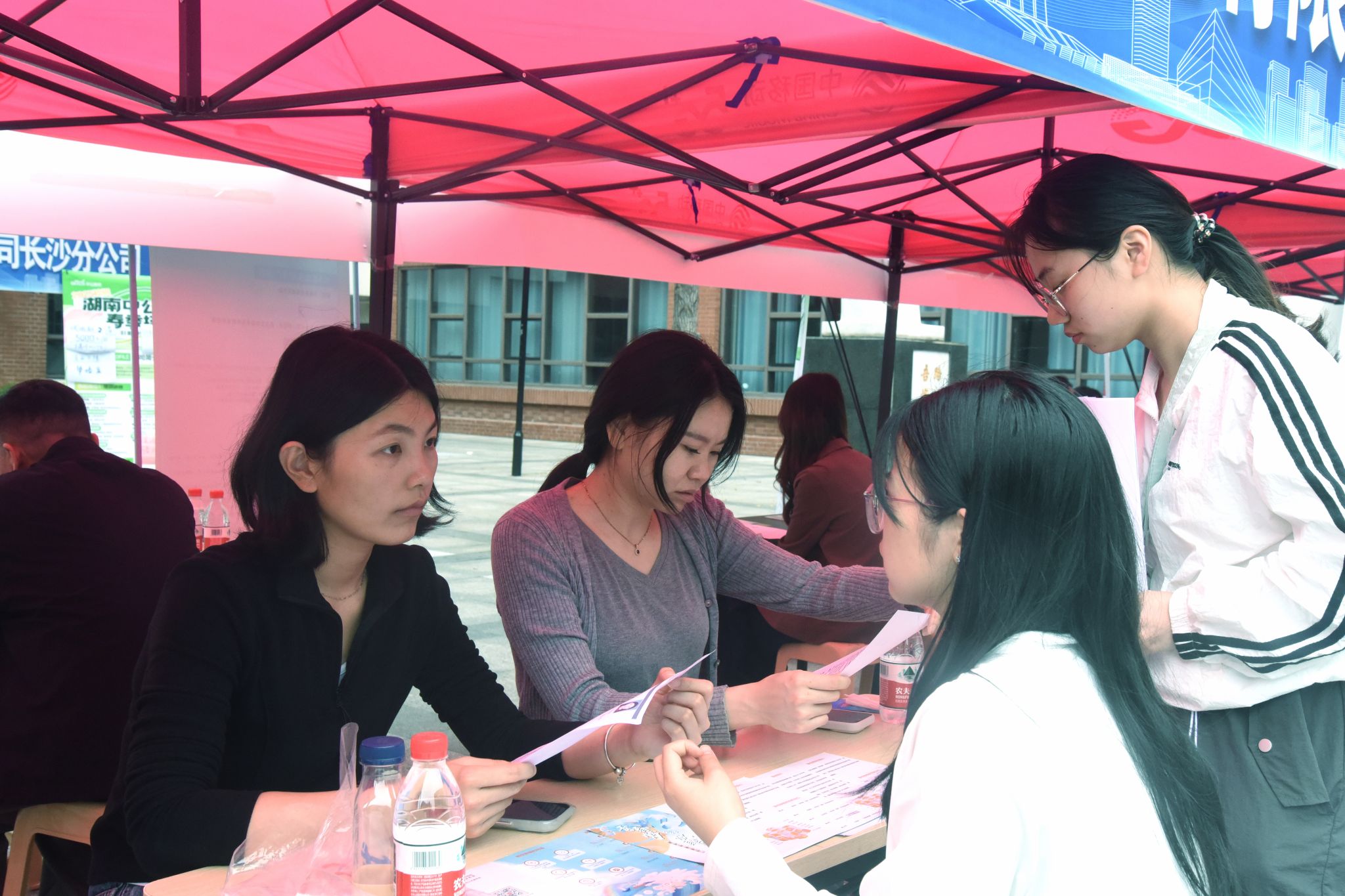 纽约国际967线路测试学工办主任颜坤、团委书记郭书畅、2022级辅导员舒怡,2025届、2026届部分研究生及本科生参与此次招聘会。