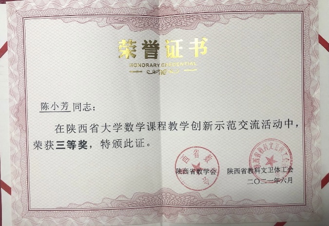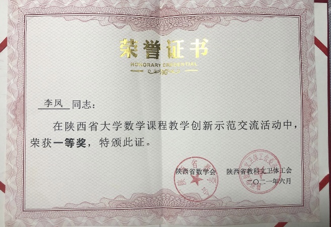 研讨会为陕西高校大学数学课程教学创新示范交流活动中获奖个人和优秀组织奖举行了隆重的颁奖仪式,best365数学与统计学院副教授李凤获得一等奖,副教授陈小芳获三等奖。