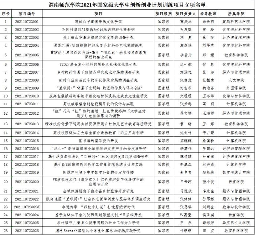 近日,教育部下发了《关于公布2021年国家级大学生创新创业训练计划项目和重点支持领域项目名单的通知》(教高司函〔2021〕13号),best365《蒲城白羊道情音乐文化研究》等26个项目获批2021年国家级大学生创新创业训练计划项目立项。