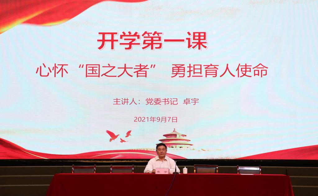 在开班典礼上,卓宇以《心怀“国之大者” 勇担育人使命》为题,为全体辅导员上了 “开学第一课”。他立足中国共产党百年华诞的重大时刻和“两个一百年”历史交汇的关键节点,从历史维度、理论维度、实践维度深度论证了新时代高校辅导员的初心和使命。结合党史学习教育,从“坚定政治信仰”“学出崇高品德”“提升工作能力”三个方面全面阐述了辅导员如何在学史力行中坚守“铸魂育人”之志、牢记“为党育人、为国育才”使命、贯彻党的教育方针。最后,他寄语辅导员要始终践行“政治要强、情怀要深、思维要新、视野要广、自律要严、人格要正”的职责要求,心怀“国之大者”,为党育人、为国育才,敢于担当、善于作为,努力做培养“立大志、明大德、成大才、担大任”时代新人的“大先生”。