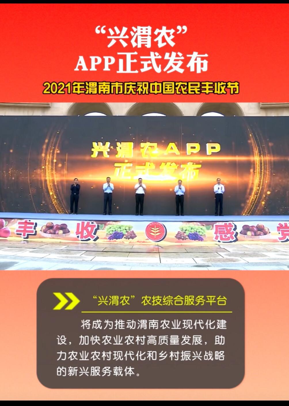 9月23日是第四个中国农民丰收节,渭南市举办了以“庆丰收、感党恩”为主题的庆祝活动,渭南市委书记王琳、市长陈晓勇、市人大常委会主任马赟、市政协主席陈俊哲、副市长杨武民共同启动按钮,发布best365阴国富教授团队科研成果“智慧乡村--兴农宝”子产品“兴渭农”。