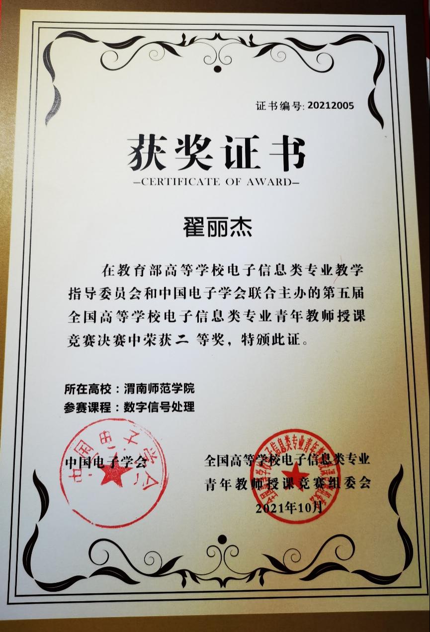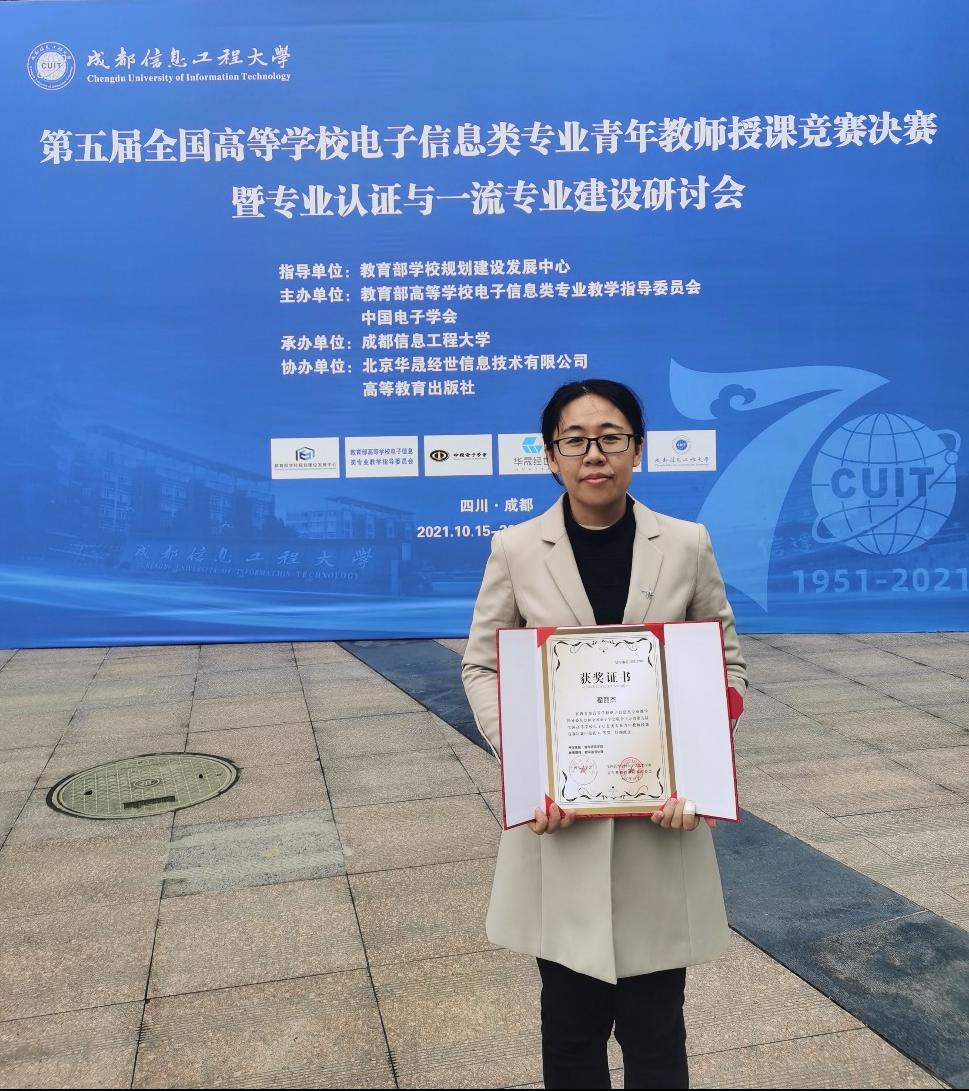 近日,第五届全国高等学校电子信息类专业青年教师授课竞赛决赛在成都信息工程大学举行。best365物理与电气工程学院教师翟丽杰荣获二等奖,实现了best365国家级教学竞赛零获奖的突破。