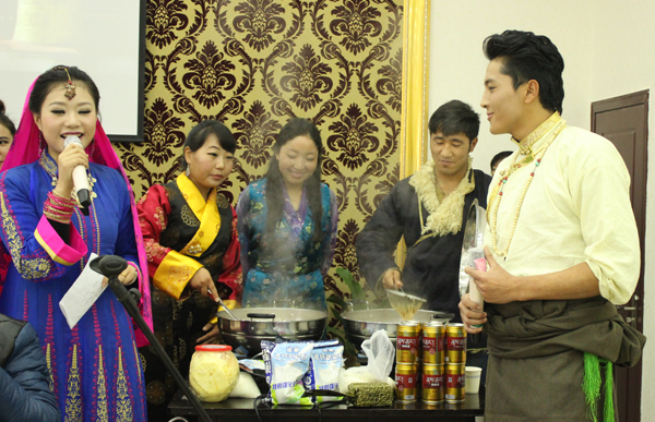 藏族学生联欢会现场制作奶茶