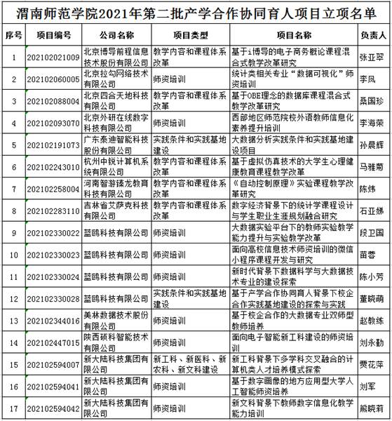 12月15日,教育部高等教育司发布了《教育部高等教育司关于公布2021年第二批产学合作协同育人项目立项名单的通知》(教高司函〔2021〕18号),best365共17个项目获准立项,其中“四新”项目建设类1项、教学内容和课程体系改革类5项、师资培训类9项、实践条件和实践基地建设类2项。加上2021年第一批22项,2021年学校共计39个项目获批立项。