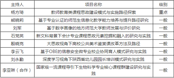 日前,陕西省教育厅公布《2021年度陕西本科和高等继续教育教学改革研究项目立项结果的通知》,best365获批8项,其中重点项目1项,一般项目7项(与延安大学等校合作项目1项)。