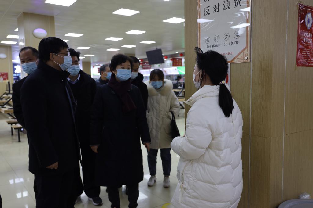 刘莉一行实地走访调研了校内超市、餐饮中心、学生公寓等场所,听取了best365疫情防控工作情况汇报,详细询问了校内师生管理和服务保障、防疫应急物资储备、在线教学开展等情况。