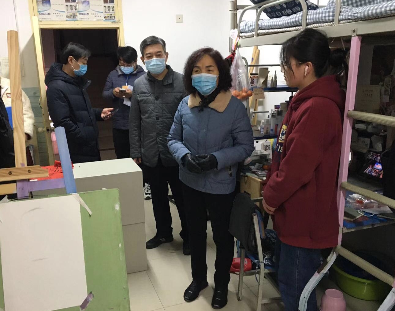 王菊霞从一楼一路走访至六楼,走进学生中间,与学生们亲切交流,详细询问学生们在宿舍里的日常卫生防疫、宿舍供暖、热水供应与使用、公共自助洗衣室的消杀等生活保障情况,了解学生们在封闭管理期间思想情绪状况及学习计划调整和线上学习的准备与适应等情况。她感谢同学们对学校疫情防控工作的支持与配合,叮嘱大家关注身体健康,保持良好心态,合理搭配饮食,坚持劳逸结合,多与家人沟通。她同时强调,即将开始线上教学,同学们要按时作息、认真上课,有困难及时向辅导员、任课教师等反馈,充分利用时间,在学业上取得新的收获。