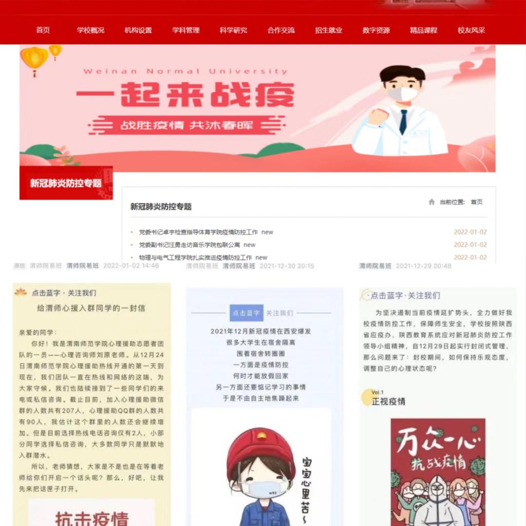 宣传部、学工部、各二级学院充分利用网站、微信、微博、抖音等新媒体宣传平台,向师生加强应对疫情防控知识和措施宣传,发布《致全校师生和家长们的一封信》《党委书记卓宇致全体渭师学子的新年慰问信》等,开设“防疫心语”宣传专栏,及进推送师生及家长防疫心声,及时宣传推广best365师生的抗疫好经验、好做法,凝聚抗疫力量,坚定必胜信心。大学生心理健康教育指导中心及时组建心理援助志愿服务团队,开通24小时心理援助服务热线,在线接待学生咨询,积极开展心理疏导;组织开展“渭师抗疫,阳光护航—宅起来、学起来、动起来”系列活动,开展文章荐读、读书分享、心理讲座、线上团体辅导等活动,助力学生身心健康。