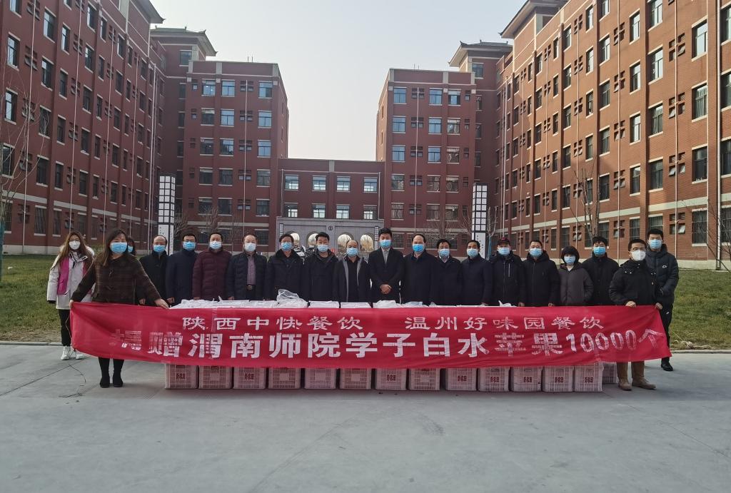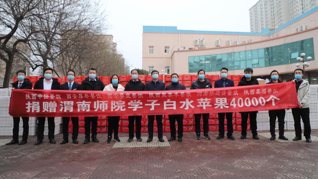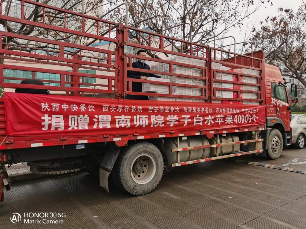 1月8日 ,一辆满载“爱心苹果”的车辆驶入渭师校园。在全校师生齐心协力共同抗击疫情之际,由陕西中快餐饮管理有限公司、西安厚朴餐饮管理有限公司、西安晏皇餐饮管理有限公司、陕西聚美丰餐饮集团公司、陕西鑫福餐饮管理有限公司、温州好味园餐饮管理公司、河南怀源情餐饮管理公司等企业向best365全体学生捐赠优质白水苹果4万个。