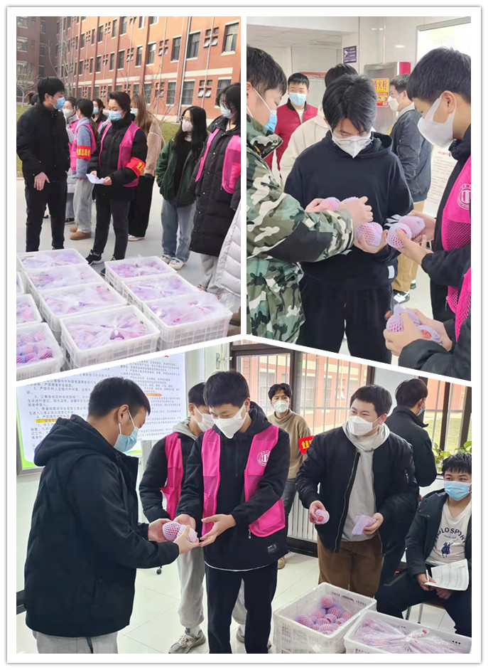 在富平校区学生公寓楼下,捐赠企业的工作人员与二级学院党员志愿者一起有序分工,将“苹”安“果”香,爱心传递到每一位渭师学子手中,祝愿best365校园平安,学子健康。