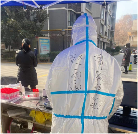 一个党员就是一面旗帜。在这场没有硝烟的战斗中,外国语学院傅雨凡、美术学院范泽豪分别以党员、入党积极分子身份响应号召,参与西安市疫情防控志愿服务工作。傅雨凡说:“作为一名党员,我的城市生病了,我不能袖手旁观,应该做点什么。”在志愿服务工作中,她身穿防护服坚守岗位,一站就是五六个小时。