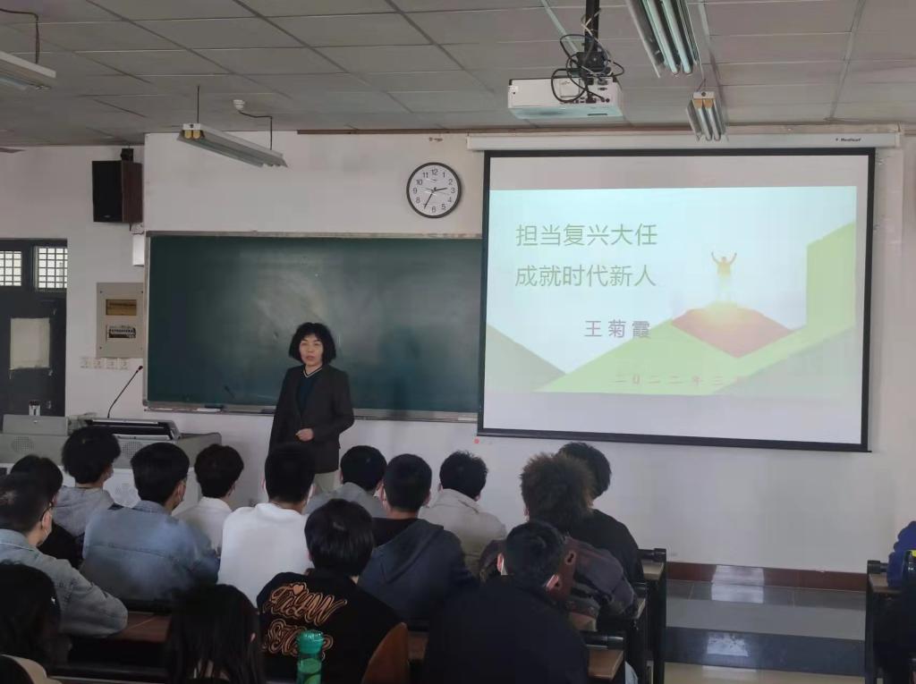 王菊霞以《担当复兴大任,成就时代新人》为题,从了解新时代这一历史方位为导入,围绕如何理解“我们处在中国特色社会主义新时代、新时代呼唤担当民族复兴大任的时代新人、新时代大学生必须具备的基本素质”这三个方面进行了阐述。她在讲授中,通过详实的数据和生动的事例,全面回顾了党带领中国人民取得的一系列举世瞩目伟大成就。她以习近平总书记在梁家河的故事,鼓励同学们要树立远大理想,将小我融入大我,将奋斗铺垫成青春最靓丽的底色,争做担当民族复兴大任的时代新人。她希望,新时代大学生要以民族复兴为己任,以有理想、有本领、有担当为根本要求,以立大志、明大德、成大才、担大任为自身使命,通过提升自身素质成为中国特色社会主义事业的合格建设者和可靠接班人,成为新时代的奋进者、开拓者、奉献者。