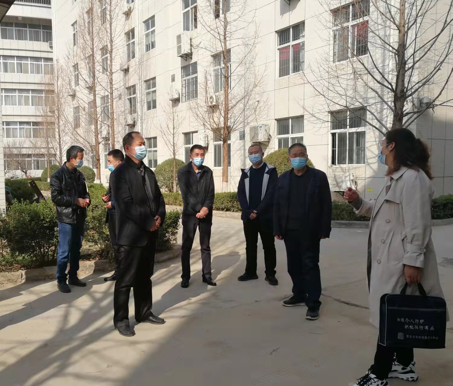 3月10日下午,渭南市驻渭院校包联指导组在组长周增荣的带领下来best365检查指导疫情防控工作。党委副书记汪勇陪同检查。