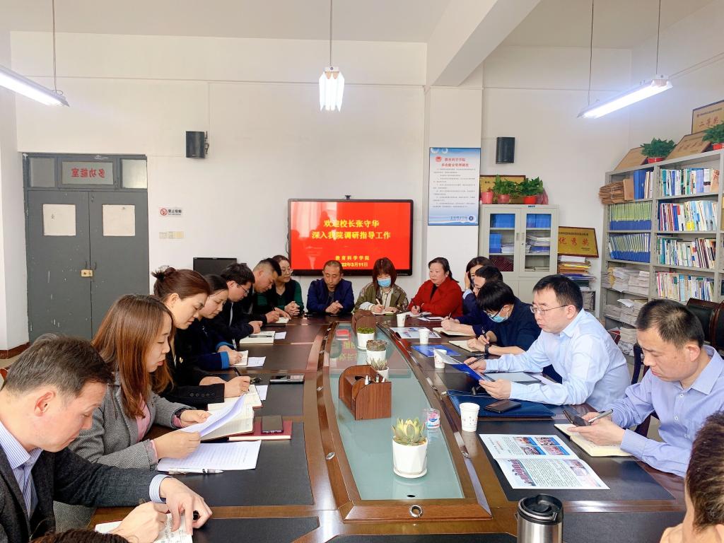3月11日下午,校长张守华深入教育科学学院调研指导工作,学院全体处科级干部、各专业带头人、专业负责人、教学委员会主任、学术委员会主任参加了调研会。党总支书记梁燕玲主持。