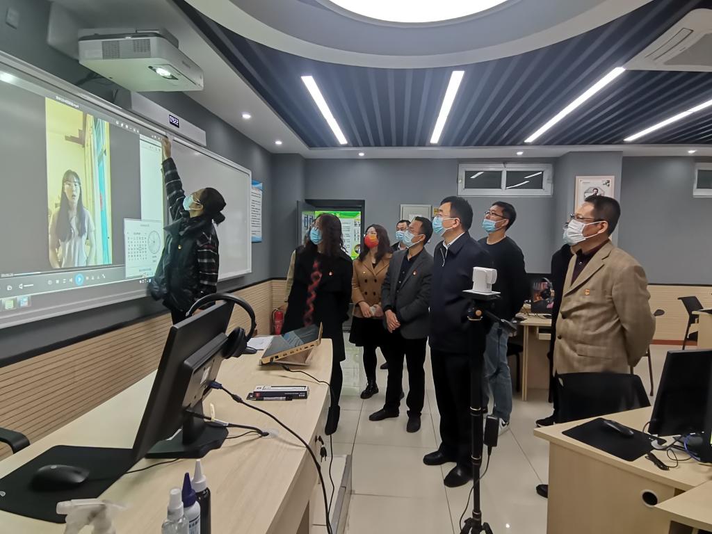 张守华实地查看了外国语学院商务英语实训教室、语音实验室,听取了相关负责人的介绍,详细询问了实验设备状况、使用情况,体验了多媒体平台授课模式,对师生微课录制进行了重点指导。