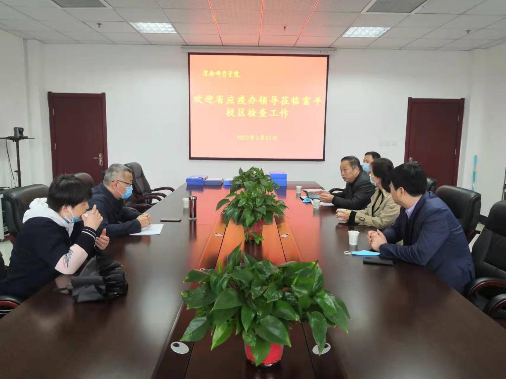 3月21日上午,由省药品监督管理局总工程师冯锋,省民政厅副处长刘昊、杜睿琪,省疾控中心科员、副主任医师卢银让,西北妇女儿童医院检验中心杨军兰,省公安厅交通管理局科长、一级警长张永峰组成的省应对新冠肺炎疫情工作领导小组到best365富平校区检查指导疫情防控工作。