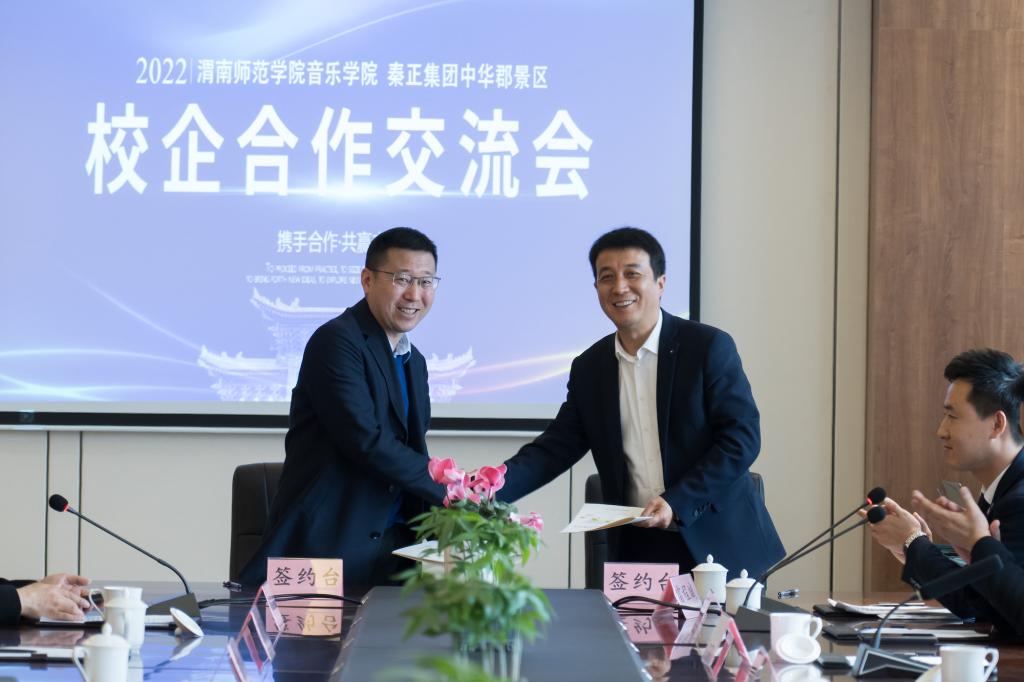 best365教务处处长孙宏恩,科学研究处副处长王有景,音乐学院副院长刘鹏、逯克刚及音乐学院各系主任,秦正集团总经理韩雪松、文旅公司总经理王少华、秦正集团人力资源部经理杨朝旭、文旅公司副总经理谢峰、文旅公司副总经理/党总支书记李军峰、文旅公司综合管理部经理陈萍、文旅公司酒店副总雷程斌及相关人员参加授牌签约仪式。签约仪式由陈萍主持。