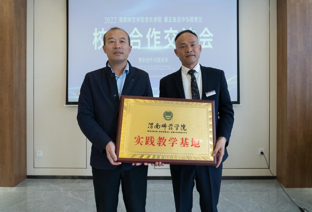 3月25日上午,副校长卢爱刚一行到富平县中华郡文化旅游景区参观交流,并举行与中华郡文化旅游景区“实践教学基地”“非遗传承基地”签约授牌仪式。
