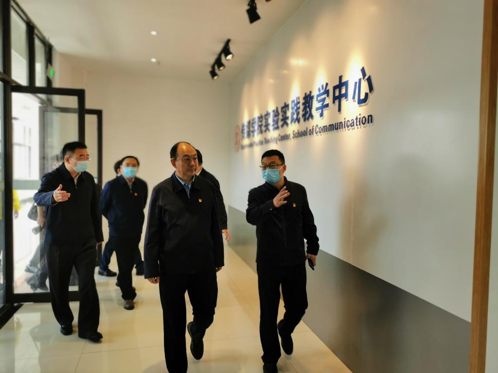董小龙一行首先来到教学楼,查看教学设施及信息化设备使用情况。他指出,学校教学设施要符合办学标准,要将设备利用达到最大化。在传媒学院教师休息室,董小龙与准备上课的师生进行亲切交谈,询问教师在校工作状况和教学情况。在美术学院艺术走廊,一行人分别观看了心理剧展演视频、学生绘画书法作品展、雕刻展等,深入到美术学院辅导员办公室,看望了正在工作中的学生思想政治辅导员。他谈到,辅导员工作是一项细致、琐碎而又伟大的育人工程,辅导员要继续深入加强对学生的教育和引导,及时掌握学生思想动态,给予学生更多关心关爱,积极引导学生成长成才。