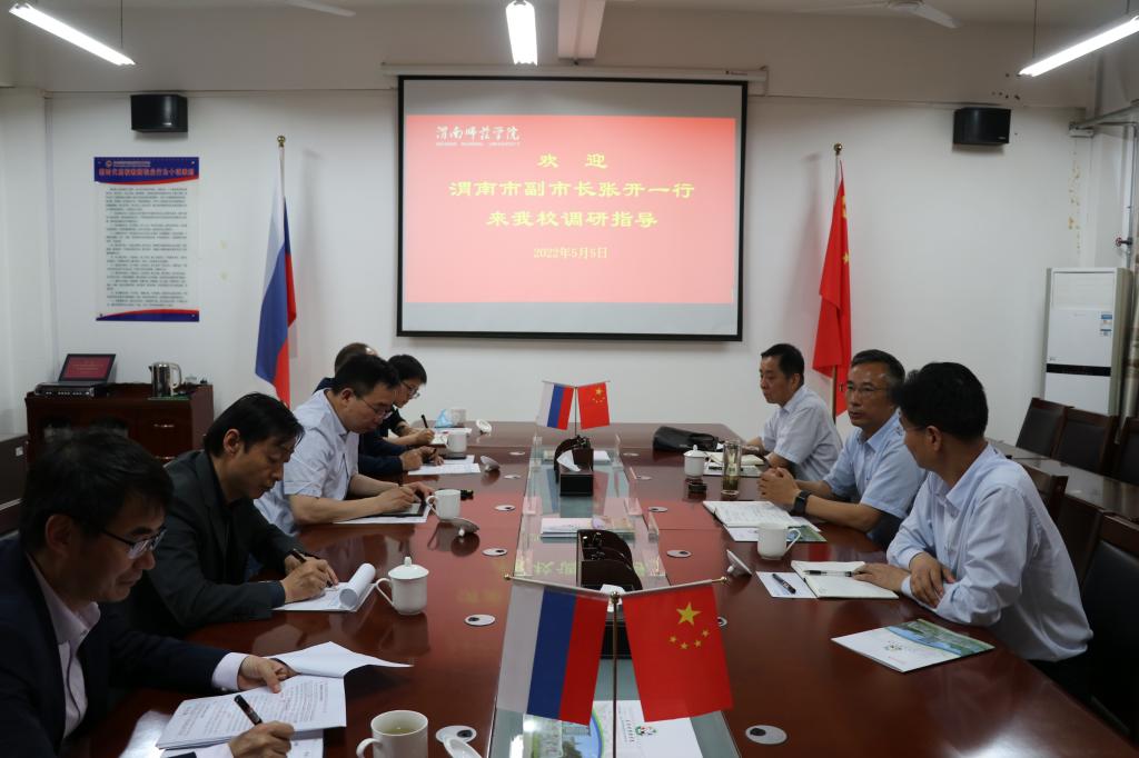 5月5日下午,渭南市副市长张开在市政府副秘书长马道平等人陪同下来best365调研指导。党委书记卓宇,校长张守华,副校长卢爱刚在接待室会见了张开副市长一行,双方就下一步深入校地合作进行了充分沟通和交流。