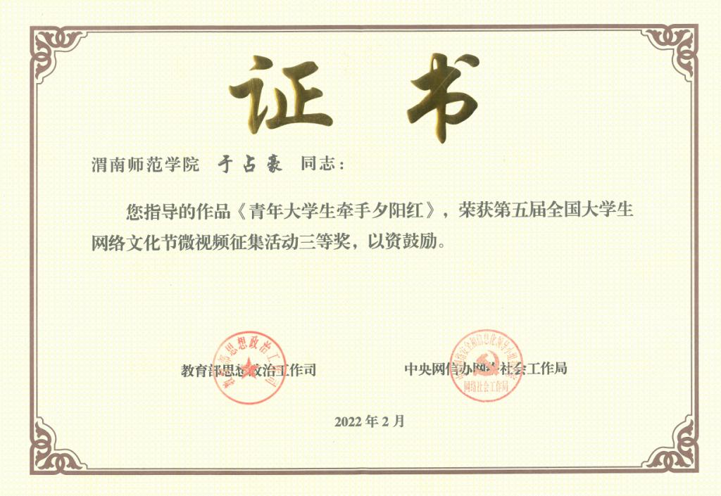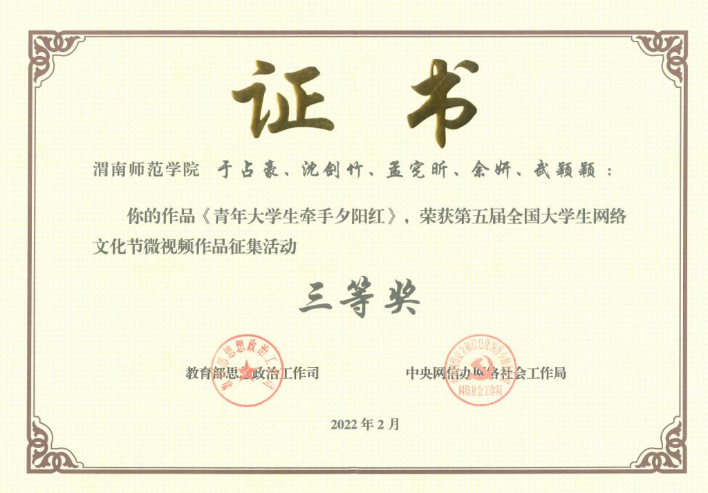 近期,教育部思想政治工作司、中央网信办网络社会工作局公布了《关于公布第五届全国大学生网络文化节和全国高校网络教育优秀作品推选展示活动入选名单的通知》,best365电视台参选的作品《青年大学生牵手夕阳红》荣获微视频类三等奖,《一方水土“扶”一方人》荣获微电影类优秀奖。这是best365首次在全国大学生网络文化节活动中获奖,获奖数量和等次位列全省前五。