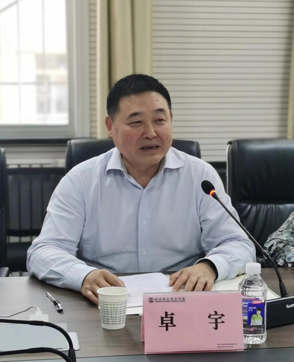 座谈会上,杨凌职业技术学院校长王周锁对卓宇一行的到来表示欢迎。他介绍了杨凌职业技术学院的办学历史、办学理念、“双高”建设、联合办学工作开展情况。