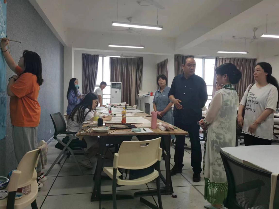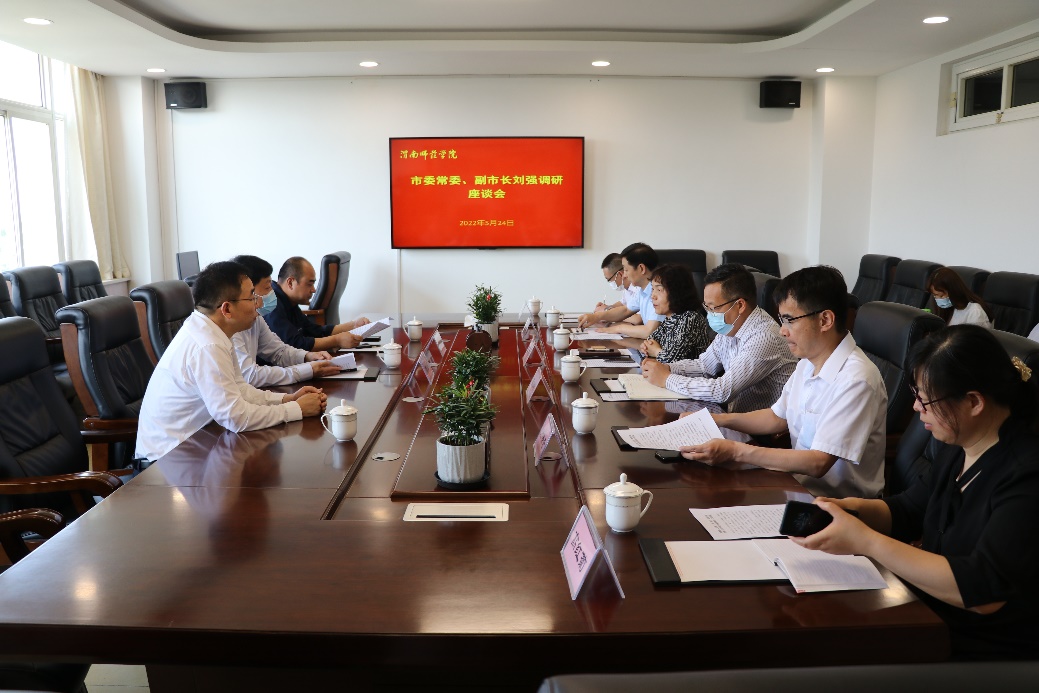5月24日,渭南市委常委、副市长刘强,市美术家协会主席党宽阳一行来best365调研指导,校长张守华,副校长王菊霞,党委委员、宣传部部长李明敏及相关部门负责人参加调研座谈会。