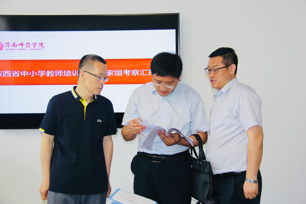 5月30日下午,省教育厅组织专家对best365申请设立“陕西省中小学教师培训基地”(以下简称“基地”)进行实地考察。考察组人员有省教育厅教师处副处长周淼,陕西省中小学幼儿园教师和校(园)长培训评估中心主任、陕西省培项目执行办公室主任、陕西学前师范学院教育培训学院院长杨令平,陕西省中小学校长幼儿园园长培训研究中心主任、陕西师范大学教师干部培训学院院长李铁绳,西安市碑林区教师进修学校校长和巧云,省教育厅教师处干部张科浦,省培项目执行办公室干部邹燕等6人。“基地”筹建情况汇报会在厚德楼四楼第一会议室召开。会前,党委书记卓宇、校长张守华会见了考察组一行,副校长王菊霞陪同会见并参加汇报会。