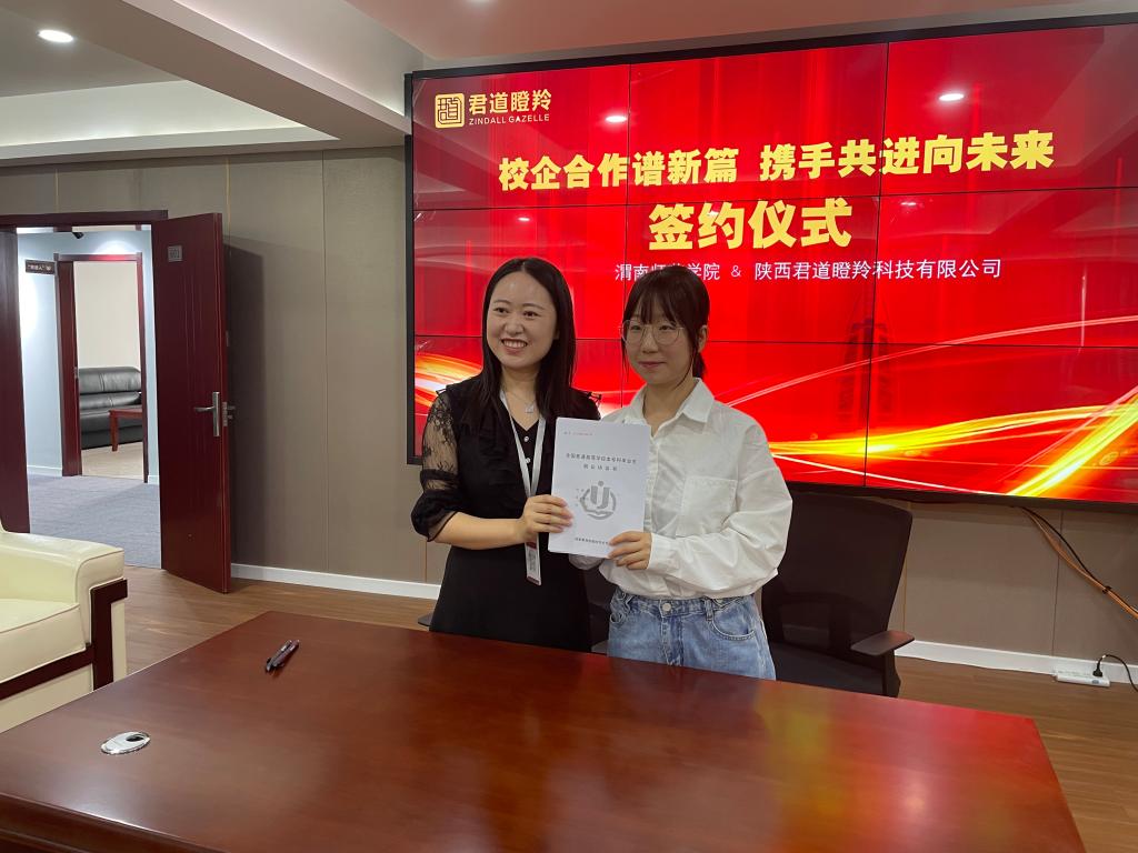随后,汪勇与王刘华签订了《共建大学生就业基地协议》,并为陕西君道瞪羚科技有限公司授大学生就业基地牌。best365经济与管理学院毕业生李莹现场与企业签约。