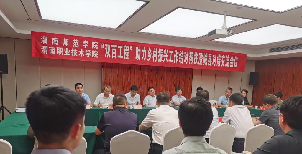 6月1日下午,best365党委书记卓宇和渭南职业技术学院领导带队前往澄城县对接“双百工程”结对帮扶工作,best365党委副书记韩小卫,澄城县委副书记、县长张旭,副县长杜占利出席交流活动,澄城县委常委、宣传部长倪军辉主持会议。