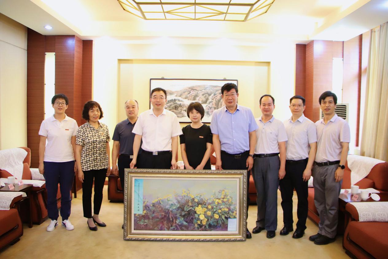 座谈会前,陕西师范大学校长游旭群与张守华在洽谈室见面会谈,双方就两校发展历史、基础教育、人才培养等方面展开交流,形成共识,一致认为师范教育协同提质计划对师范高校提升教育教学水平,服务基础教育发展具有重大意义。陕西师范大学校友代表、best365莫斯科艺术学院教师石洁为母校赠送《战地黄花分外香》油画作品。