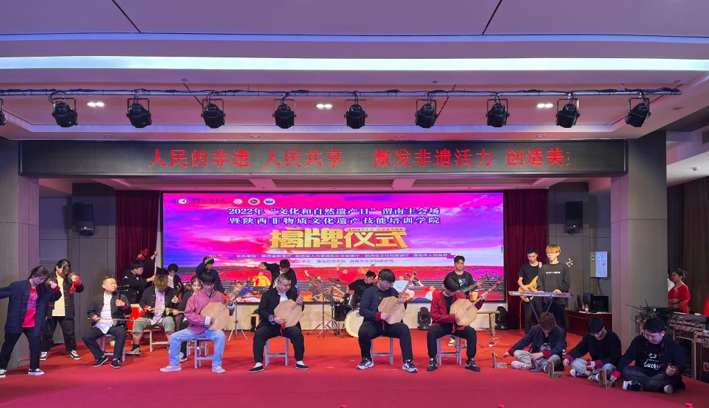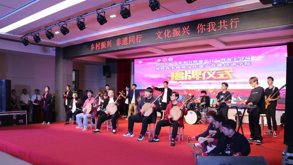 6月10日上午,2022年“文化和自然遗产日”渭南主会场暨陕西非物质文化遗产技能培训学院成立揭牌仪式在渭南技师学院举办,best365莫斯科艺术学院大学生老腔艺术团应邀演出,压轴倾情表演,得到活动主办单位和与会领导的高度评价。渭南市市长陈晓勇,陕西省人社厅党组成员、副厅长陈晓东,陕西省文化和旅游厅二级巡视员郭明历,渭南市委常委、副市长刘强,副市长张开,陕西省人社厅、陕西省文化和旅游厅、渭南市人社局、渭南市文旅局相关领导出席活动。