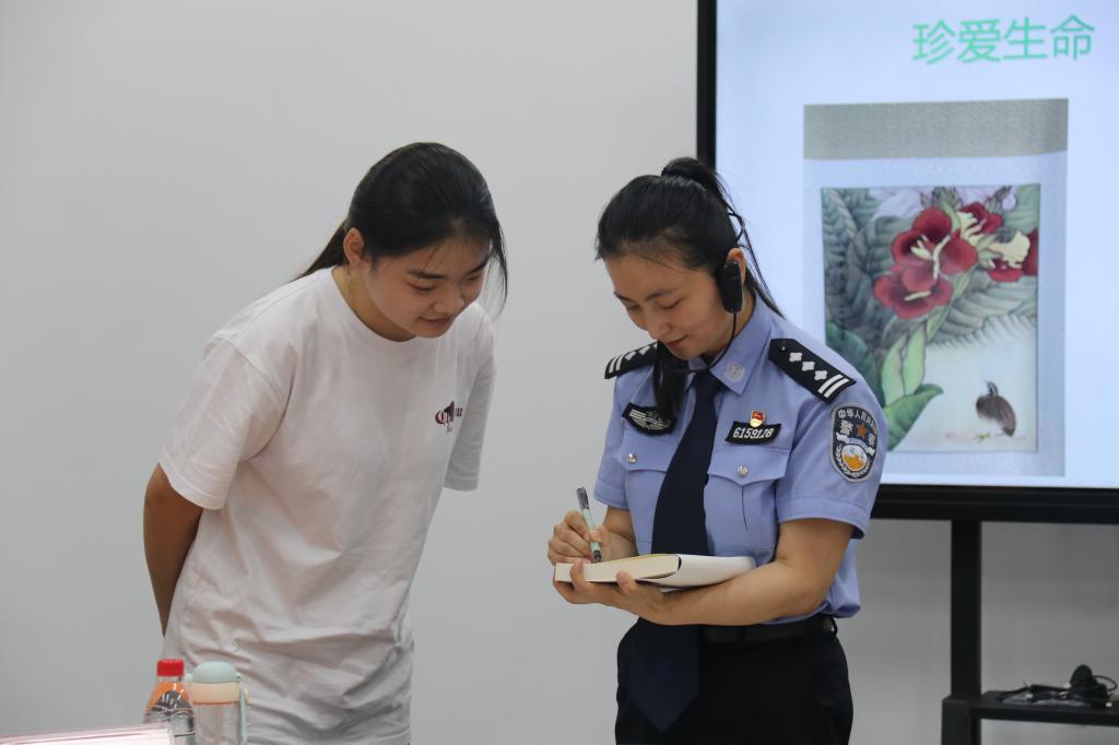 师生们一边欣赏绘画,一边了解绘画背后的故事之后,围绕“谨慎择友、积极预防新一代毒品”等话题踊跃发言。积极发言的师生还获得了刘平的赠书。刘平表示,大学生要努力建构自己的社会支持体系,特别是寻求专业的心理援助,才能更好、更健康地渡过人生低谷。心理健康问题对当代大学生的危害也是日渐凸显,所以大学生更需要加强心理健康教育。最后,刘平带领大家通过正念冥想的方式进行放松。在刘平温柔的指导语带领下,现场师生体验只有将个人的实现与祖国伟大复兴结合在一起,才能做到真正充分地自我实现。
