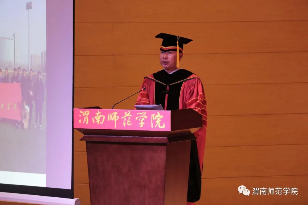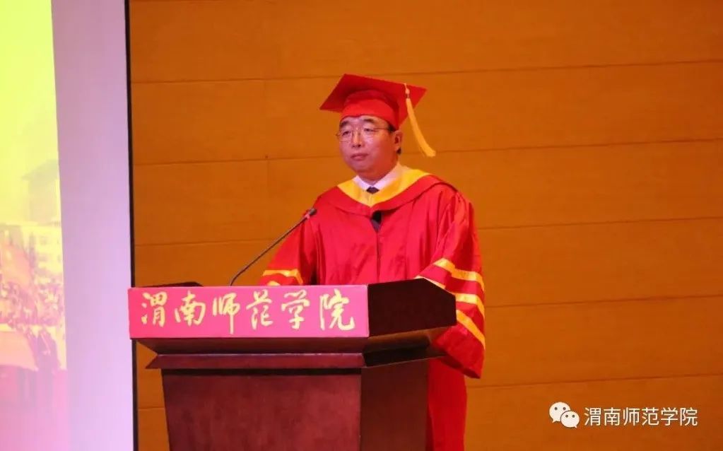 校长张守华代表学校向毕业生们致以热烈的祝贺和衷心的感谢,祝贺同学们顺利完成本科阶段学业,走向人生更广阔的天地,感谢同学们给best365中国官方网站留下的蓬勃朝气与青春活力。他对广大毕业生提出三点殷切希望:一是站上讲台,在新的人生赛道上整装待发,随时准备迎接各种挑战;二是站稳讲台,在新的人生赛道上努力奔跑,争取跑出好成绩,站稳脚跟,才能走稳人生;三是站好讲台,在新的人生赛道上追求卓越,努力成就精彩。“四年渭师缘,一世渭师情。”毕业典礼结束之际,校长呼吁大家“常回家看看,渭师永远欢迎大家!”祝同学们前程似锦,梦想成真!