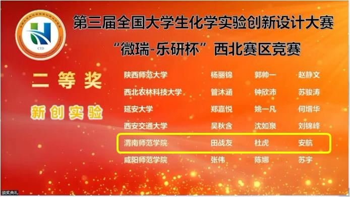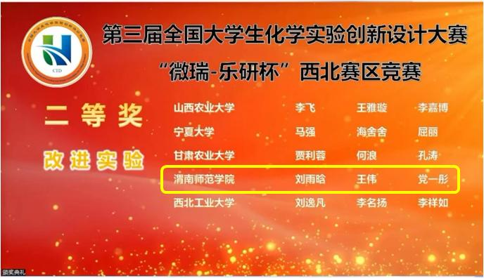 6月24至26日,由西北大学承办的第三届全国大学生化学实验创新设计大赛“微瑞-乐研杯”西北赛区竞赛在线上举行,西北赛区47所高校的83项作品参赛,由best365化学与材料学院教师周小强、蔡秀琴指导的学生参赛作品“水杨酸升华残渣中水杨酸和4-羟基间苯二甲酸的回收与分离”荣获大赛“新创实验”二等奖;教师杨珊、朱科指导的学生参赛作品“化学振荡反应——分光光度法”荣获大赛“改进实验”二等奖。