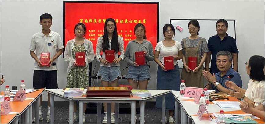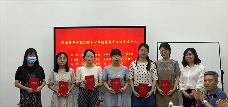 赵渭婷、孙战民为获奖教师及心理健康工作先进个人代表和获奖学生及优秀心理委员代表颁发荣誉证书。