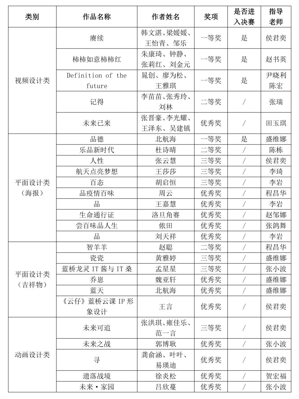 获奖名单