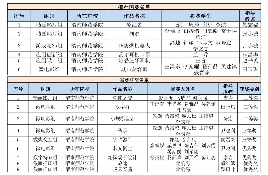 据悉,本次省赛共有5400余件作品参赛,涉及动画影片、微电影、数媒交互、游戏与3R、应用创新及8K影像等类。经陕西赛区评审组45位专家严格评选,最终评出近200件优秀作品报送国赛组委会,参与国赛评选。同时,评选出省级等级奖和优秀奖380项。(通讯员 陈栋 审核人 贺宏福)