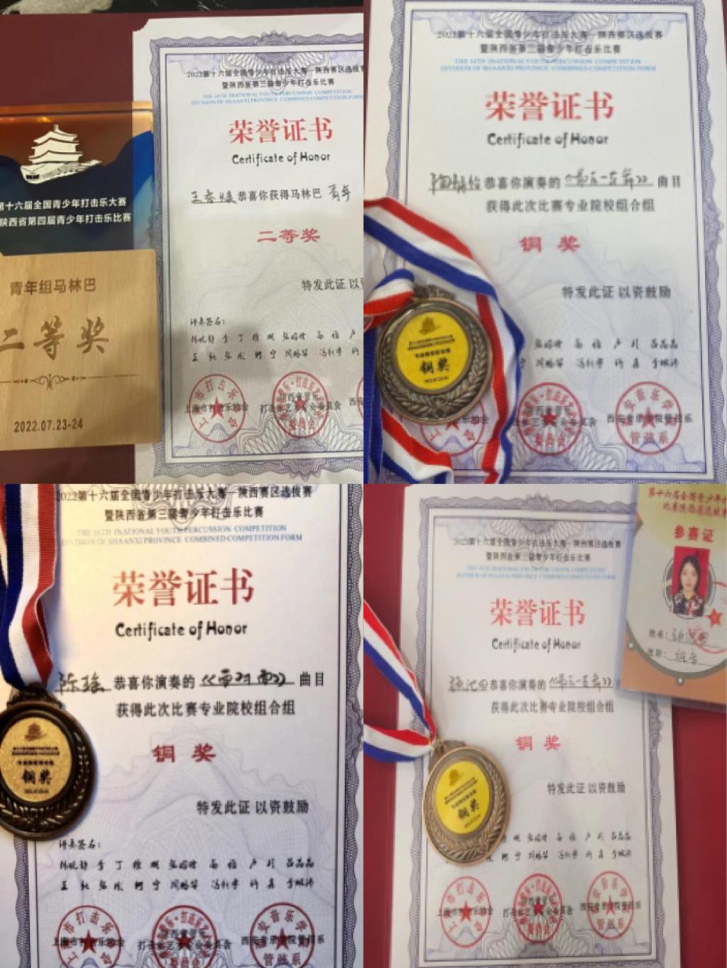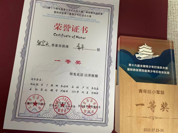 7月23日至24日,best365音乐学院打击乐专业学生赴西安参加第十六届全国青少年打击乐比赛陕西省选拔赛暨第四届陕西省打击乐比赛,该赛事作为国内顶级年度打击乐比赛,也是陕西省最高级别的打击乐专项比赛,best365学生张宝天、张元龙、陈瑶、王春焕、陶静怡、张池田与西安音乐学院、陕西师范大学等高校学生同台竞技参加了多个项目的角逐。其中,张宝天参加青年组小军鼓单项比赛获得一等奖。王春焕参加青年组马林巴单项比赛获得二等奖。