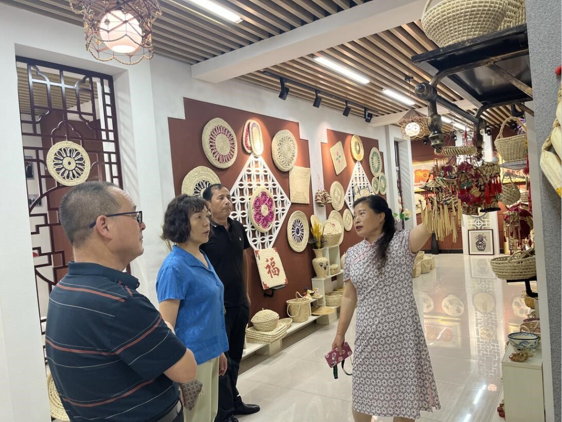 王菊霞一行参观了巧娘草编手工艺农民专业合作社的劳动实践体验室、草编样品展室、专家工作室。合作社理事长陈春苗介绍了省级草编非遗的申报过程和自己创业的过程,详细讲解了草编的选材、设计、加工等生产环节,并指导学生代表现场实践体验。