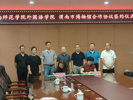 7月28日,副校长卢爱刚参加外国语学院与渭南市博物馆校馆合作签约仪式,外国语学院党政负责人参加签约仪式。