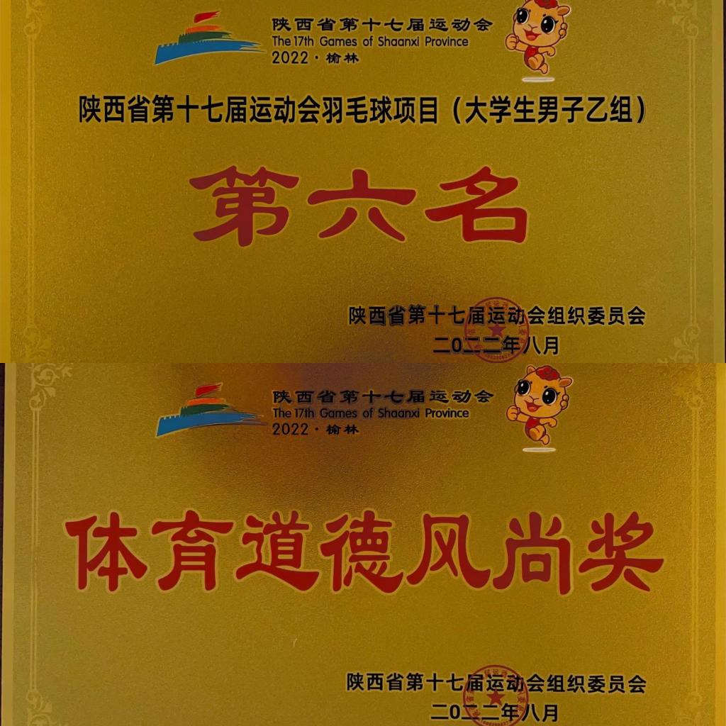 7月31日至8月3日,best365羽毛球代表队参加陕西省第十七届运动会羽毛球大学生组比赛,荣获乙组男团第六名和体育道德风尚奖。