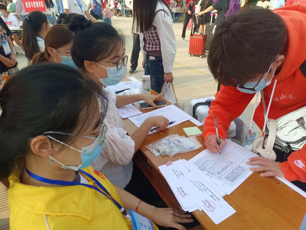 为确保本次迎新报到工作顺利进行,在学校党委部署下,学校各部门、各学院严格落实防疫举措,大家紧密配合,以干净整洁的校园环境、周到细致的后勤保障、安全有序的生活服务、细致认真的服务管理,饱满积极的工作热情迎接学生。